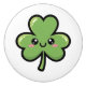 This kawaii shamrock nursery ceramic knob features a cheerful, three-leaf clover with a sweet, blushing face and large, sparkling eyes. With its thick, bold black outlines and vibrant green shading