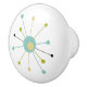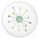 Ce bouton en céramique moderne coloré du milieu du siècle présente une étoile atomique bleu turquoise, vert avocat, crème et noir. Si amusant à ajouter à votre buffet ou stand de nuit!
