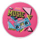 Boombox de style rétro coloré avec décoration de texte "Musique", formes géométriques, triangles, rectangles et formes arrondies rayées