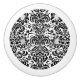 Elégant damas floral noir sur l'arrière - plan blanc personnalisé vous pouvez changer. L'anneau blanc autour de l'arête circulaire est facultatif. Si vous avez besoin d'aide pour customiser un de mes designs, contactez le concepteur ArtOnWear. Mise en forme de texte gratuite avec aide en direct disponible sur demande.