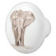 "A delicate watercolor painting of an elephant is featured on this drawer pull, capturing the gentle curves and soft textures of the animal with subtle shades of gray and hints of muted color. The design brings a touch of whimsy and charm to furniture, making it a unique and artistic accent for any room."