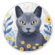 Bouton De Porte En Céramique Fleurs Jaunes Chat Bleu Russe