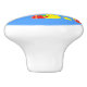 Un bouton en céramique sur le thème de l'été. Conçu avec du popsicle rose et quelques fraises rouges qui tombent autour du popsicle avec quelques éclaboussures de peinture jaune. Arrière - plan bleu.