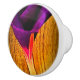 La belle fleur violette vibrante sur ce bouton en céramique s'appelle Morning Glory. Le plante d'escalades d'été devient sauvage et produit généralement des fleurs jumelles. Cette image unique est d'une fleur contre une barrière en bois. Fait une pièce unique. Merci de faire des emplettes avec nous !