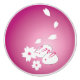Un bouton de porte violet avec une illustration de deux lapins à neige, deux fleurs de sakura et quatre pétales de fleurs de sakura.