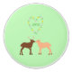 Ce superbe bouton en céramique présente un cerf mâle et femelle qui ressemble à un couple amoureux. Le cerf mâle (buck) est brun foncé et a de grands bois, le cerf femelle (doe) est brun pâle avec des taches blanches. Il y a un coeur au-dessus du cerf en fleurs marguerites blanches et en beignets jaunes. Il y a du texte personnalisé dans le coeur pour que vous puissiez inclure les initiales du couple. Ce design est parfait pour les mariages, les anniversaires et les célébrations de la Saint-Valentin.