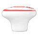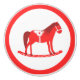 Ce superbe bouton en céramique de Noël présente une image art numérique d'un mignon cheval à bascule de style scandinave. Le cheval est rouge avec une crinière rouge foncé, la queue et les sabots. Le cheval sympathique sourit. Il a une selle blanche et des rois avec de jolis motifs de style Scandi rouge sur la selle, y compris le soleil, la lune et les étoiles, les coeurs et les fleurs. La base du cheval rocking est rouge et est couverte de feuilles blancs. Le design a été inspiré par le cheval suédois Dala.