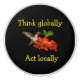 Ce bouton en céramique nous incite à penser globalement et à agir localement. Il présente l'image d'un joli colibri sur une fleur de zinnia. Vous pouvez facilement modifier ou supprimer le texte. Notre planète est confrontée à tant de défis. Nous devons essayer de le protéger pour l'avenir de nos enfants.