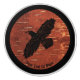 Une silhouette noire simple d'un Corbeau (Corvus corax) sur une image arrière - plan du côté rouge inverse (à l'intérieur) de l'écorce de bouleau. L'image du corbeau a reçu un léger effet "rugueux" ou "usé". Ajoutez votre propre texte.