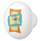 Ce bouton en céramique moderne du milieu du siècle funky présente des formes rectangulaires serrées et étirées dans les couleurs bleu turquoise, crème et orange. Les accents Starburst en rose, bleu, or et noir mettent en valeur le design. Ajoutez cet accent rétro funky à votre stand de nuit ou tiroirs de la commode!