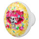 Bouton De Porte En Céramique Rire Skeleton Woman dans Red Bonnet