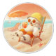Smile Dog est en mode vacances complet, se relaxant en short orange, sirotant un verre sur la plage et prenant le soleil. Parfait pour les ambiances estivales et les espaces de détente.