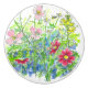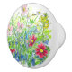 Un joli bouton en céramique fleurie décoré d'un jardin de fleurs sauvages dont la camomille, les cosmos rouges, les pink et les snapdragons jaunes avec une abeille visitée dessinée à l'encre avec de l'aquarelle. Joli pour un décor maison ou un accent amusant pour un hangar à pots!