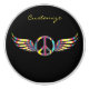 Symbole de paix rond de style hippie classique avec ailes d'oiseaux plumées à customiser, personnalisez en changeant de nom