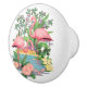 Beaux flamants roses dans leur bouton en céramique rond de coffret ou de tiroir de paradis.