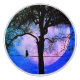 Magnifique pleine lune aux teintes violettes et ciel bleu cobalt avec un chat noir sur un fil qui la regarde