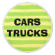 Voitures, Camions est écrit en noir. Bandes d'aquarelle vert jaune. Amusants accessoires de décoration de salle de jeux pour enfants pour aider à rester organisé. Conception originale © TamiraZDesigns.