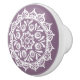Ce mandala blanc est assis sur un arrière - plan violet vintage clair. La couleur est claire et raffinée. Partie de la collection Brosya Mandala.