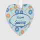 Cet ornement se compose d'un texte facile à personnaliser et d'un motif composé d'aiguilles avec boutons orange et bleu est parfait pour les amateurs de couture, quilter ou artisans.