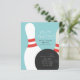 Une invitation à la fête d'anniversaire moderne et neutre pour les femmes avec un bowling et 2 épingles de bowling. Des amis Invitations pour célébrer et jouer à un jeu amusant de bowling pour célébrer l'anniversaire de votre enfant. Le support motif de coordination peut être supprimé pour laisser de la place à d'autres informations sur les parties comme les directions.