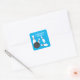 Autocollants carrés de la fête d'anniversaire de bowling pour enfants. Fun party fournitures pour les célébrations. Ajoutez votre propre texte personnalisé. Poignées de bowling et conception des frappes à bille. Bleu ou couleur arrière - plan personnalisée.