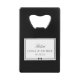 Célébrez le père de la mariée avec cet élégant ouvre-bouteille personnalisé. Conçu dans un style classique noir et blanc, il est personnalisé avec son nom et la date mariage, ce qui en fait un souvenir unique pour le grand jour. Petit et pratique, il s'intègre facilement dans une poche, prêt pour tous les moments spéciaux dignes d'un toast. Un cadeau élégant et réfléchi qu’il utilisera et qu’il chérira longtemps après la célébration.