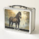 Beau Chevaux sauvages aquarelle personnalisée boîte à lunch avec une image différente à l'avant et à l'arrière, modifier le nom vous-même lorsque vous commandez.