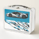 Cette boîte à lunch est affichée avec une impression d'art de voiture de course. La couleur de la boîte à lunch est Blanc Personnaliser cet article ou acheter tel quel. Image stock vecteezy.com