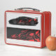 Cette boîte à lunch est affichée avec une impression d'art de voiture de course. La couleur de la boîte à lunch est rouge Personnaliser cet article ou acheter tel quel. Image stock vecteezy.com