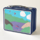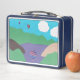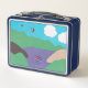Cette boîte à lunch est conçue avec ma représentation d'une scène de lac de montagne avec ballons et nuages.