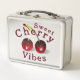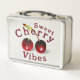 Cette boîte à déjeuner à thème cerise donne une touche de fantaisie et de charme vintage. Cette oeuvre d'art unique a différentes tonalités de écarlate, de rougissement, de violet et de chartreuse. Cette boîte à lunch ajoutera un éclat de couleur ludique à votre équipement scolaire. J'ai créé ce motif à partir d'une image dans ma peinture acrylique originale.