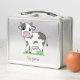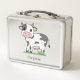 Une boîte à lunch en métal avec une jolie vache sur l'herbe et un prénom personnalisé pour retourner à l'école ou au bureau!