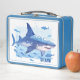 Cette boîte à lunch est affichée avec une empreinte d'art requin. La couleur de la boîte à lunch est Bleu clair Personnaliser cet article ou acheter tel quel.