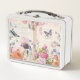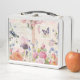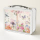 Lunch Box avec des images de marque hellosusan. Un rêve de jardin de cottages ! Oiseaux, papillons, fleurs roses et cottages. Script en arrière - plan.