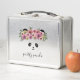 Un joli ours de panda avec des fleurs dans les cheveux. Ajoutez simplement votre nom à cette jolie boîte à lunch. Le design fonctionne le mieux sur les boîtes à lunch blanches et argentées.