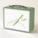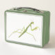 Une mante en apparence cool est imprimée sur un arrière - plan blanc, sur les boîtes à lunch. La boîte à lunch verte offre une grande couleur d'accent. Un choix amusant pour les amateurs d'insectes. J'ai fait la peinture de cette mante en prière. Merci pour faire du shopping à CherylsArt sur Zazzle.