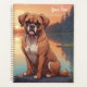 Cute Boxer Dog sitting by a lake at sunset. Puzzles, planners, notebooks ornaments tiles phone cases more.with this design in my stores. Add this image to other products. Add your own text too. Change background color. Lots of pets in my store.