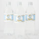Bouteille d'eau baby shower éléphant étiquettes avec adorable bébé bleu et or prince éléphant avec couronne et coussin sur un arrière - plan parties scintillant bleu et or. Vous pouvez ajouter du texte pour personnaliser ce étiquette de bouteille d'eau de baby shower d'éléphant mignon pour votre événement.