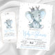 Baby shower d'éléphant garçon avec adorable petit éléphant avec belle couronne d'argent sur un arrière - plan parties scintillant d'argent. Cette invitation au baby shower d'éléphants est facilement customisée pour votre événement. Vous pouvez supprimer l'arrière - plan d'parties scintillant arrière et ajouter la couleur de votre choix.