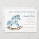 Jolie invitation à la douche bébé garçon avec un modèle de cheval rocking.