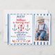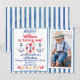 L'invitation de cette fête d'anniversaire d'aquarelle nautique de ce garçon comporte deux ancres, une bouée de sauvetage, quelques crabes, des étoiles de mer et des gouvernes. C'est une façon mignonne d'invitation les invités de la fête d'anniversaire de votre petit marin. La photo de votre petit garçon apparaît sur un cadre blanc sur le côté droit de l'invitation. Ce design est particulièrement adapté comme une invitation 1er, 2ème ou 3ème anniversaire. Cette invitation d'anniversaire nautique aquarelle est prête à être personnalisée.