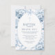 Merci aux proches avec cet élégant carte de remerciements Baptême de toile bleue, avec des fleurs bleues vintages, un design moderne avec une torsion vintage. Modèle entièrement modifiable — parfait pour le baptême, le baptême ou le baptême d'un bébé.