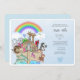 Les invitations pour la douche bébé de Noah avec tous les animaux deux par deux. Arrière - plan bleu avec un coeur bleu avec pieds bébé. Parfait pour un baby shower de garçon mais peut aussi être utilisé pour une petite fille. Personnalisez avec vos détails de baby shower.