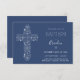 Ce baptême bleu de 3,5 po x 5 po (petit) ou invitation à baptiser présente une croix illustrée complexe blanche. Parfait pour l'occasion religieuse spéciale d'un bébé garçon, cet invitation peut être customisé pour votre événement.