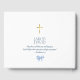 Blue Baptism Guest Book with Bow & Gold Cross - Custom Name + Date Célébrez la journée spéciale de votre petit fils avec ce livre d'hôtes élégant et moderne Baptism, avec un bébé bleu arc, croix d'or classique, et nom et date personnalisés sur la couverture. Parfait pour les baptêmes, les baptêmes ou les dédicaces des garçons, ce livre de souvenir offre un bel espace pour que les invités laissent des messages sincères, des prières et des bénédictions. Parfait pour que vos invités laissent leurs bons voeux. Conçu pour compléter le décor de votre événement avec des tons doux et un style intemporel, ce livre d'hôtes devient un souvenir précieux pour les années à venir.