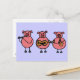 Joli dessin musical de carte postale de cochons. Un petit piggy joue de la flûte, un autre de la guitare, et le troisième du saxophone. Peut également ajouter du texte personnalisé lors de la commande.