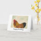Un poulet sur le devant de cette carte d'anniversaire. Il dit Joyeux anniversaire, mais l'intérieur est vide. Utilisez le texte et les polices Zazzle pour faire imprimer un message à l'intérieur de la carte, ou laissez-le vide et écrivez le message vous-même.