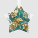 Branche avec bijoux, or et feuilles verts de Ginko biloba sur arrière - plan vert clair, peint. Ginko biloba
