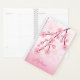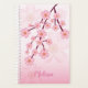 Ce planificateur rose présente l'illustration par Destei d'une branche d'arbre de cerisier sakura en fleurs avec des fleurs roses. Sur le devant, il y a également une zone de texte personnalisable pour un nom dans une police de couleur rose.