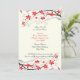 Branche de Magnolia rouge mariage coutume invitation nuptiale, avec une belle branche de magnolia avec des fleurs rouges et des bourgeons. ivoire, rouge, noir, gris.